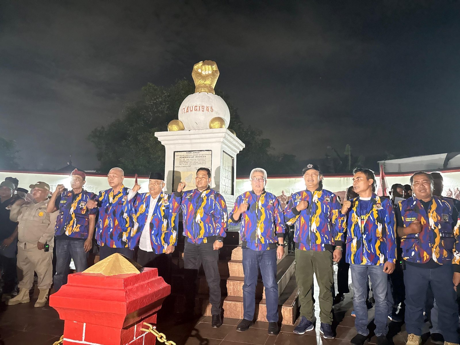 Tiba pukul 21.00 WIB, kegiatan seremonial di Monumen Kebulatan Tekad diawali dengan kegiatan seremonial menyanyikan lagu Indonesia Raya dan Mars Laskar NKRI.